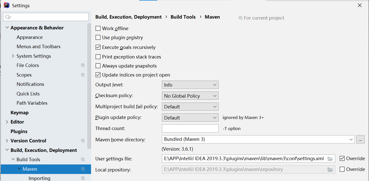我用的IDEA自带的Maven,settings.xml在安装目录\plugins\maven\lib\maven3\conf\settings.xml,貌似默认的是在C:\Users\用户名\.m2中,其中settings.xml会指向下一个选项本地目录,不想放C盘的话可以勾Override改位置,也可以改上述settings.xml: