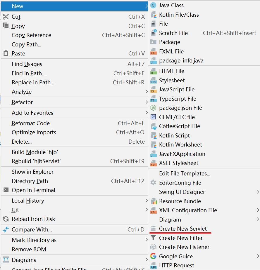 注意依赖要引入<servlet-api.version>3.1.0</servlet-api.version>(见引入maven内置Tomcat依赖这节),在src\main\java中new一个package,package中new一个servlet: