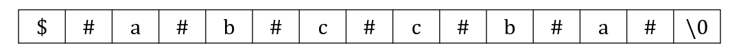 S="abccba" 我们将其转变为Ma="$#a#b#c#c#b#a#\0"